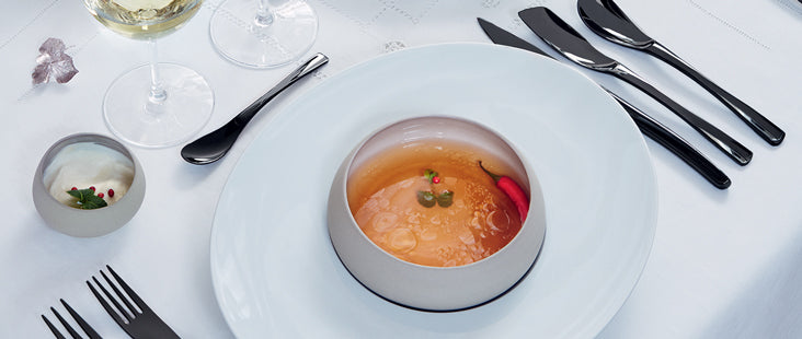 DEGRENNE работает над формами и материалами, уделяя особое внимание ожиданиям шеф-поваров, как в эстетике, так и в использовании. Чтобы сделать стол местом, посвященным гастрономическим удовольствиям, от самых простых до самых сложных.