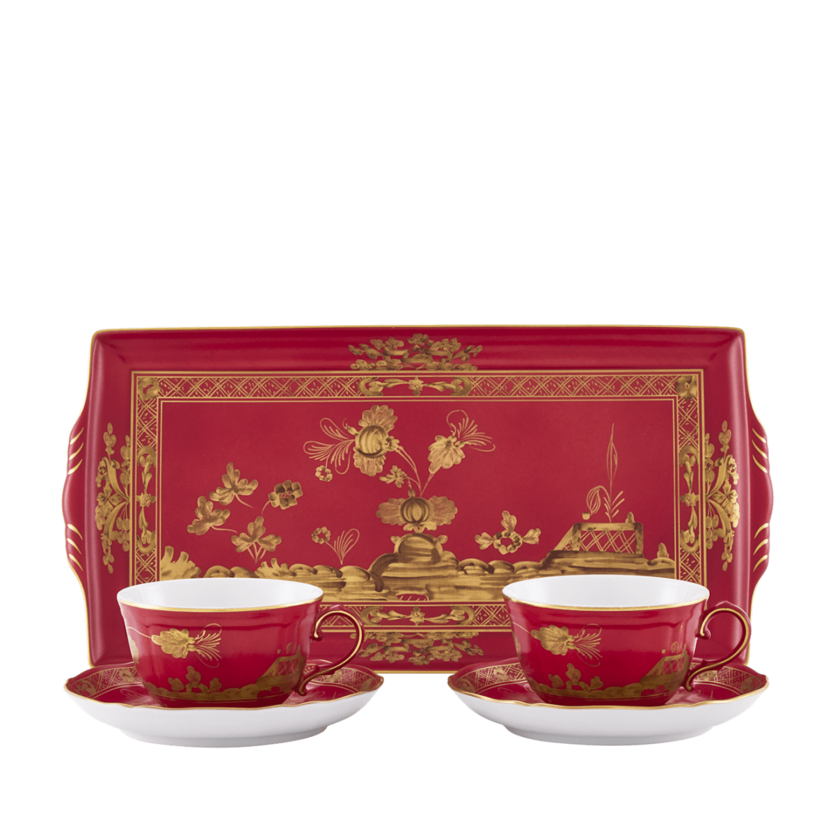 Набор из 2 -х чайных пар 220 мл., и 1 подноса, 17,7 см х 33,3 см ., ORIENTE ITALIANO RUBRUM, Ginori, 003RG00 FX2401LXGENG00132900